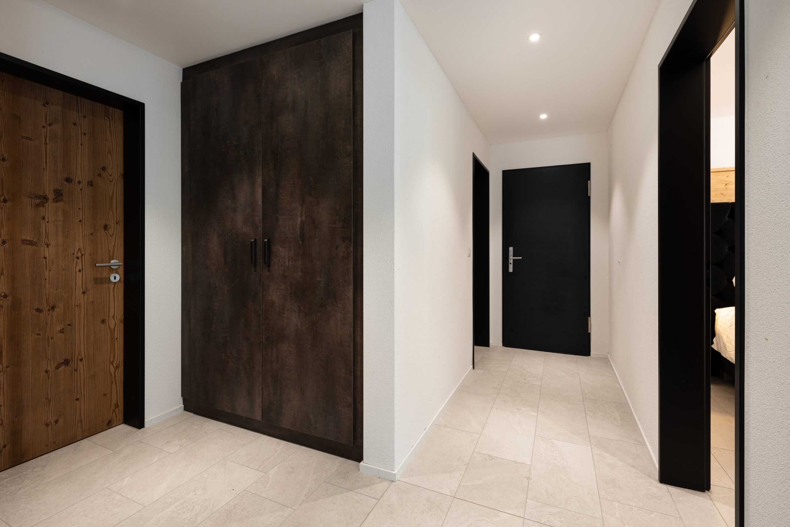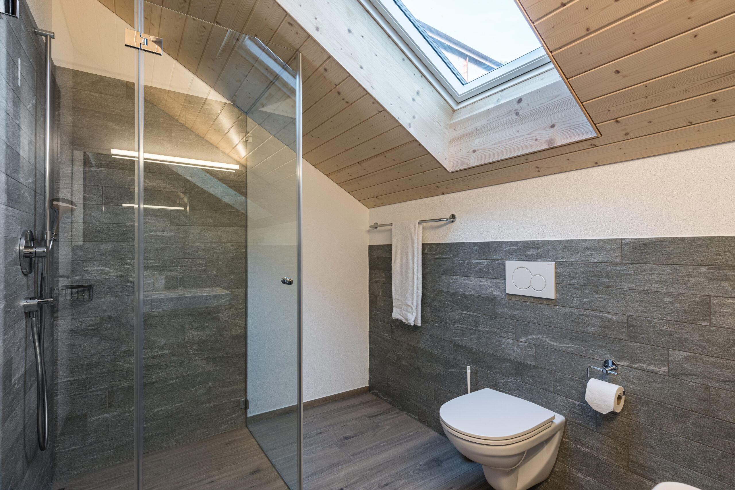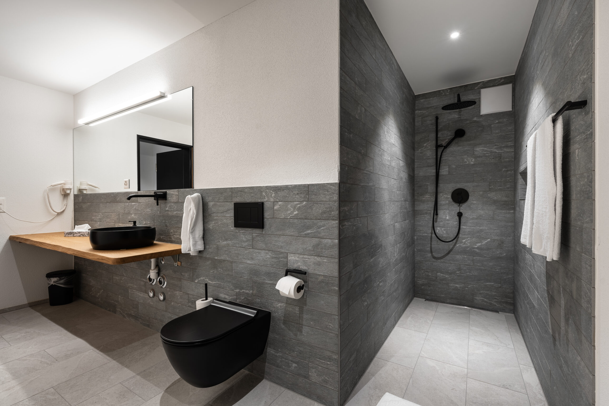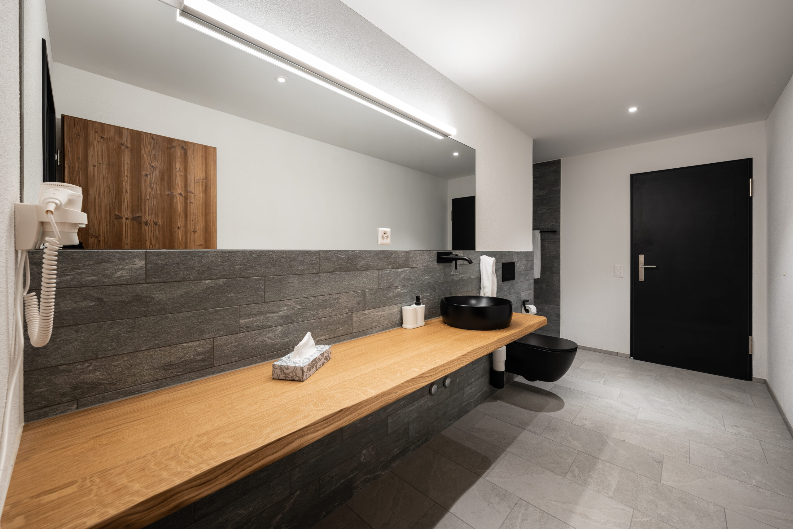 Auf dem Balkon (Obergeschoss) oder der Terrasse (Erdgeschoss) geniessen Sie die Natur und die Sonnenstrahlen der Bergwelt. Eine Suite für zwei Personen.
